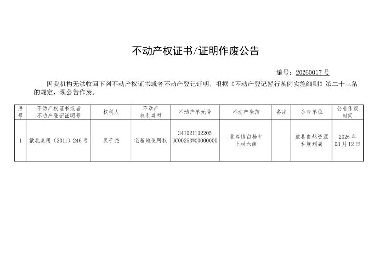 作废公告(吴子尧)