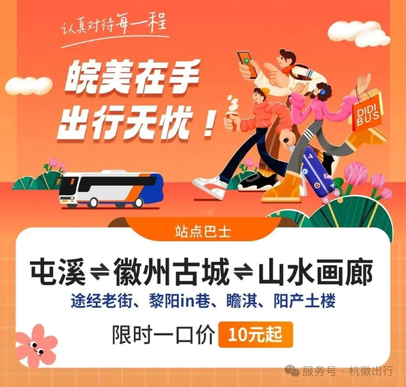 屯溪⇌徽州古城⇌新安江山水画廊(深渡)、黄山北站⇌徽州古城双线同开!带您畅行徽州~