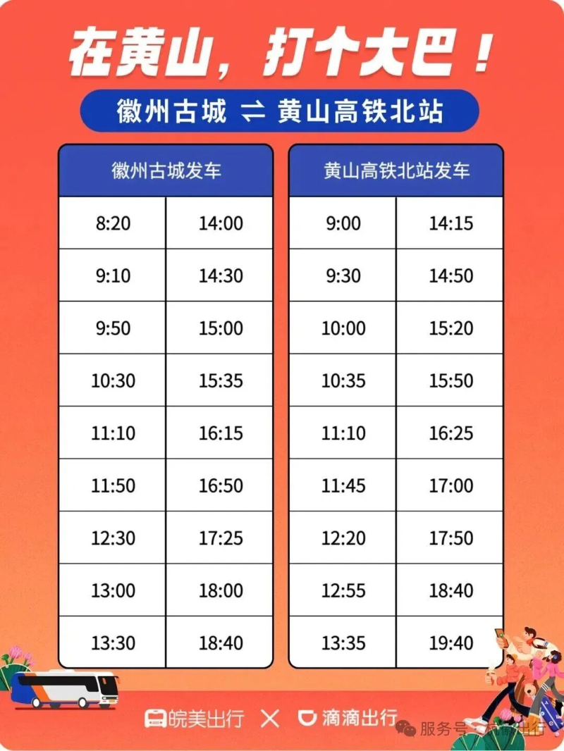 徽州古城⇌黄山北站发班时间:8:20~18:40