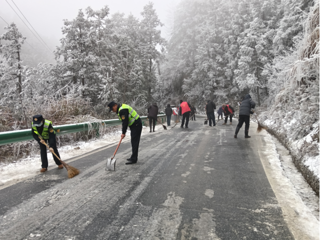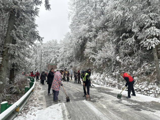 1月21日,在积雪严重的长陔岭、横心岭路段,县交运局组织工作人员会同属地乡镇干部群众顶风冒雪、冲锋在前,挥动手中的铁锹、扫把开展除雪破冰行动。在这一场“雪战”中,那一抹抹荧光绿、志愿红诠释了齐心协力是最好的“融雪剂”。经过数小时的奋战,结冰路段的冰雪基本清除,公路恢复畅通。