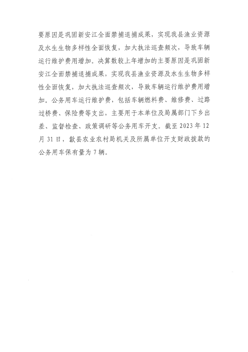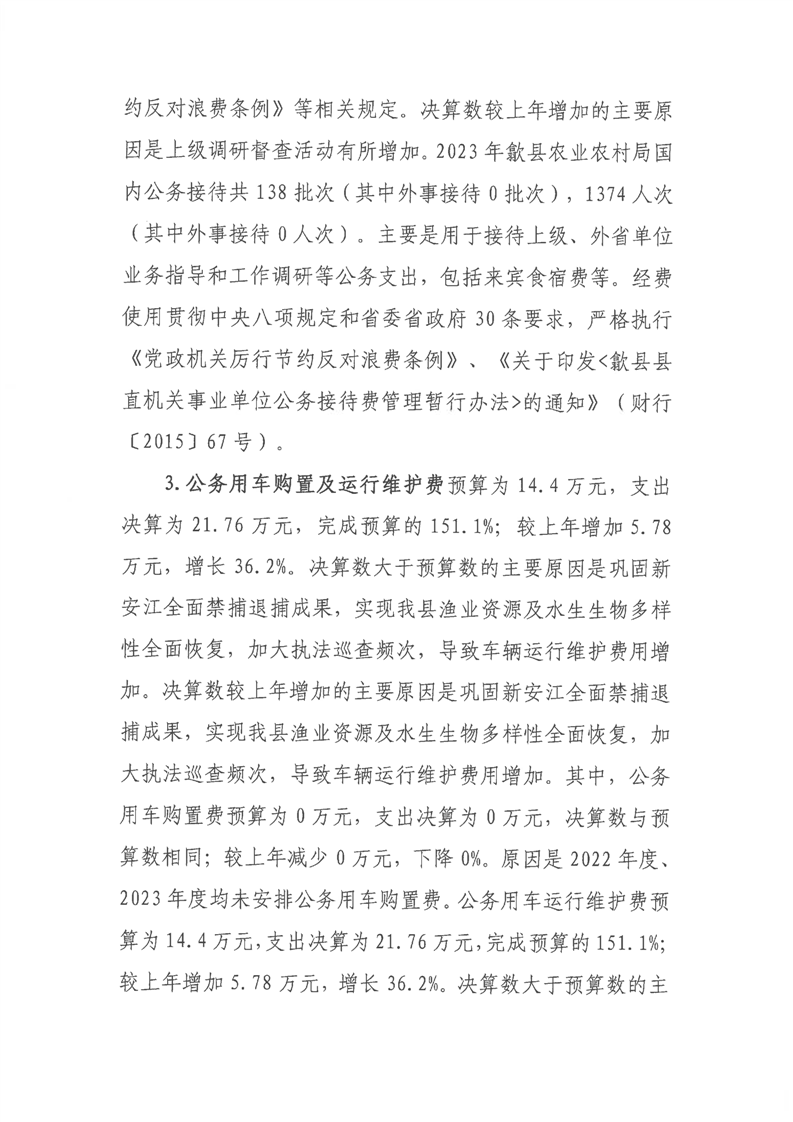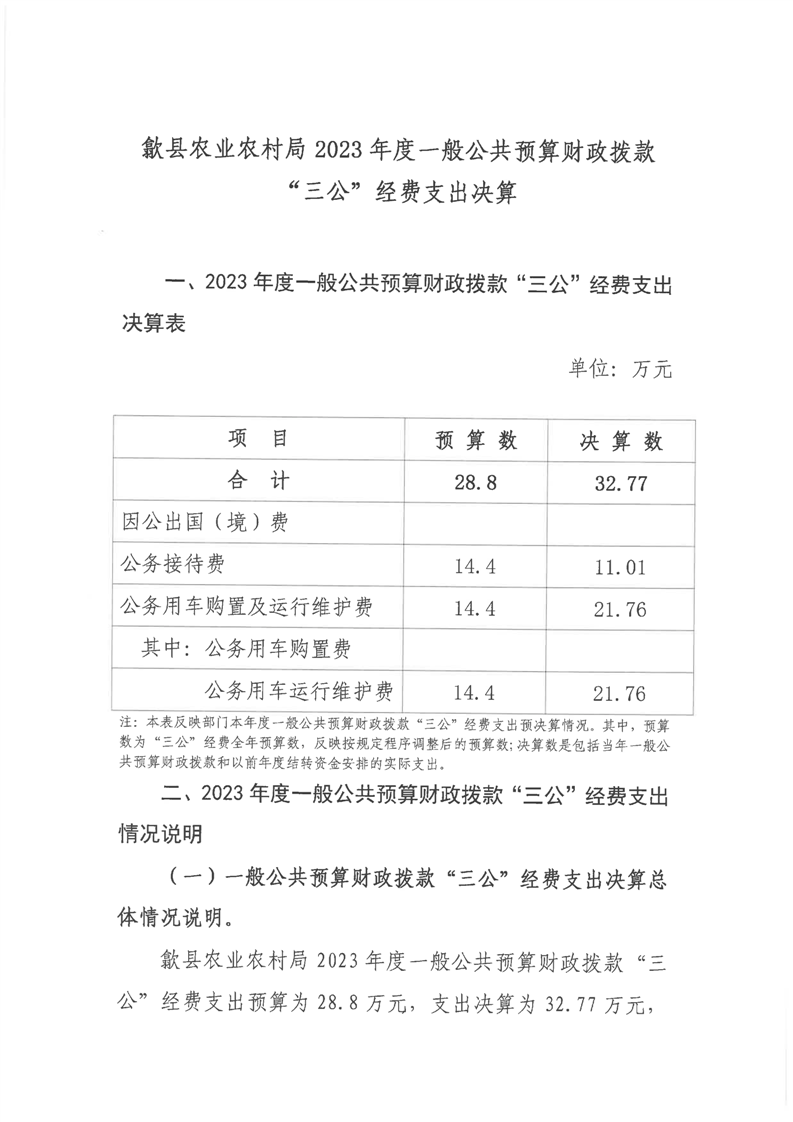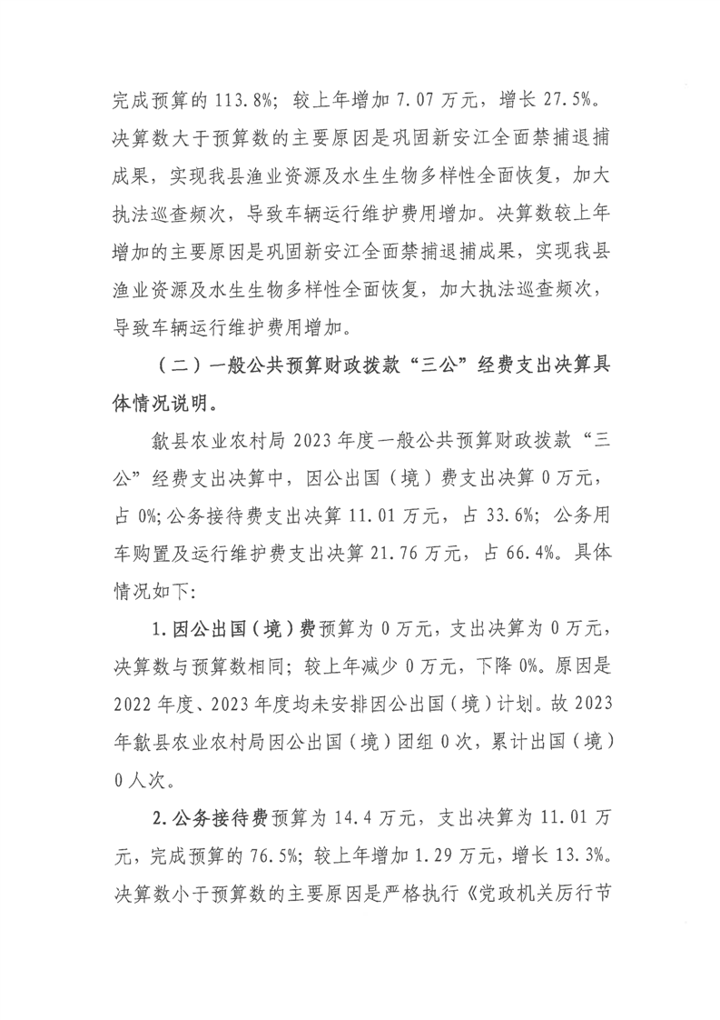 歙县农业农村局2023年度一般公共预算财政拨款“三公”经费支出决算