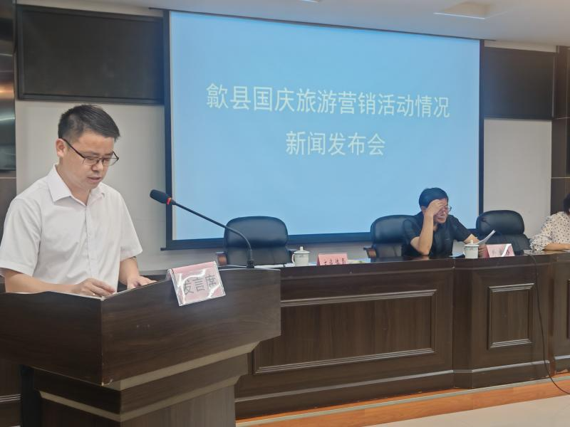 2024年9月26日上午9:00,我县在县政府二楼多功能厅会议室召开 《歙县国庆旅游营销活动》新闻发布会,由县文化旅游体育局党组成员洪宇浩作发布,具体内容如下:
