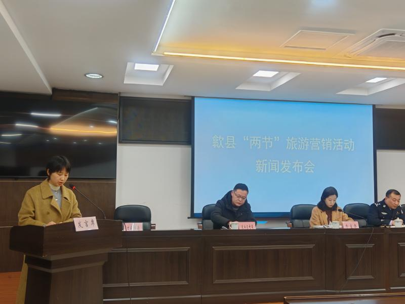 2024年12月27日上午9:00,我县在县政府二楼多功能厅会议室召开 《 歙县“两节”旅游营销活动 》新闻发布会,由县 县文旅体局市场推广中心主任 王玉凤作发布,具体内容如下: