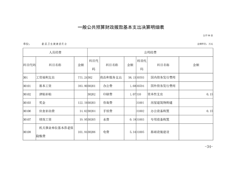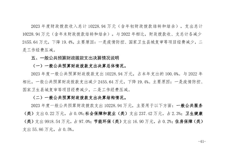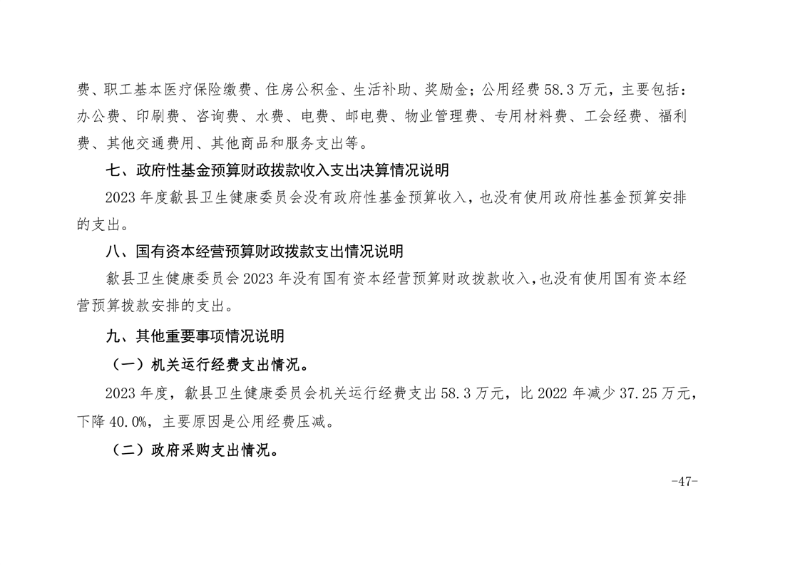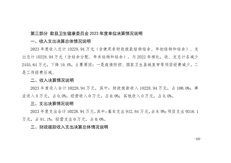 歙县卫生健康委员(本级)2023年度单位决算公开