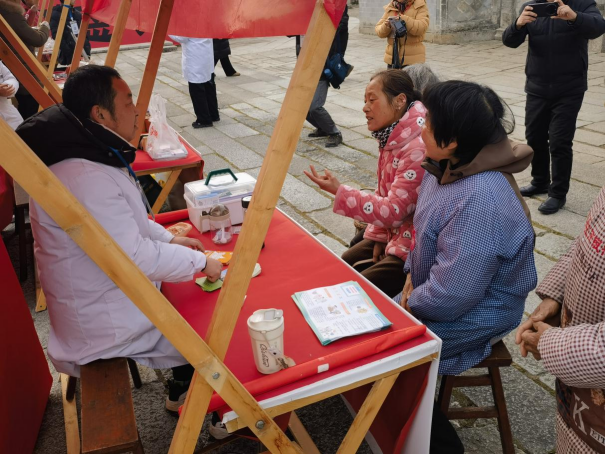 1月11日-12日,歙县许村镇举办“双寿承恩 许村有席”年猪饭新年第一局活动。许村镇卫生院组织骨干医务人员为活动现场做好医疗保障,同时联合歙县中医医院精心开展“新安养生局”义诊活动,向游客们介绍中医药的基本理念、治疗方法以及日常生活中的中医药养生小常识,提供推拿、拔罐、刮痧、针灸、耳穴压丸等中医药适宜技术体验服务,让游客们亲身感受中医药的独特魅力。