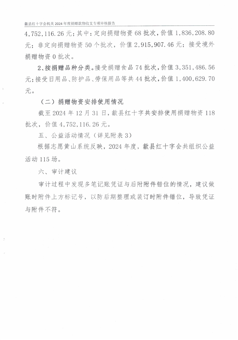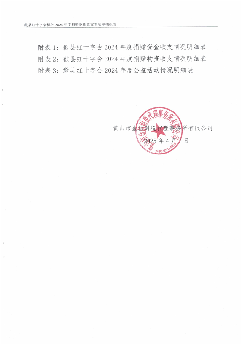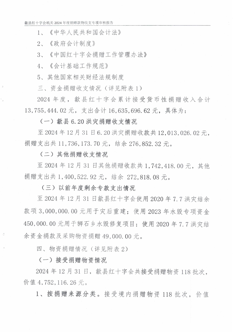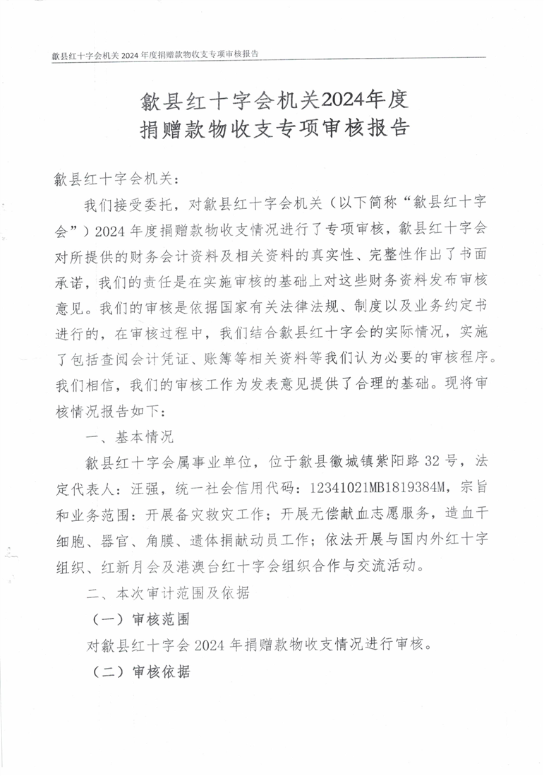 歙县红十字会机关2024年度捐赠款物收支专项审核报告