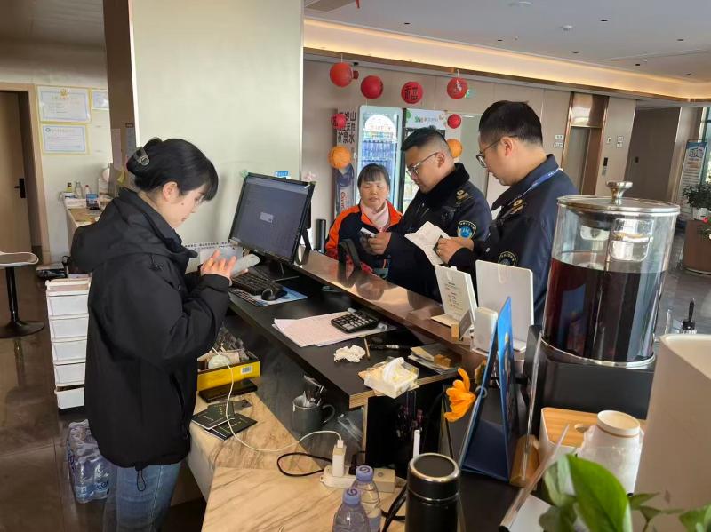 此次检查以保障旅客健康安全为核心,重点围绕住宿场所的《公共场所卫生许可证》持证及公示情况、从业人员健康合格证明是否有效、清洗消毒保洁设施是否规范配置、公共用品用具是否严格落实“一客一换一消毒”制度、是否存在重复使用一次性用品用具等问题。监督人员通过现场查看、询问、查阅记录等方式,对卫生管理关键环节进行了细致排查。