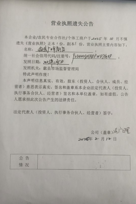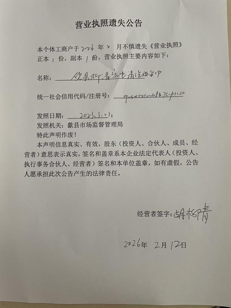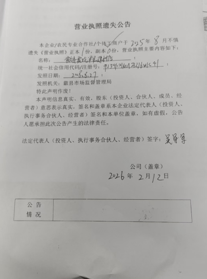 信息来源:歙县市场监督管理局