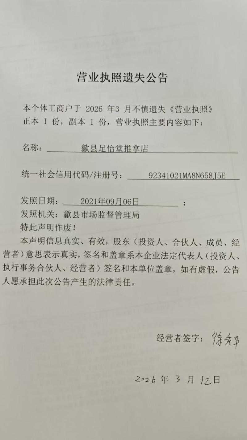 信息来源:歙县市场监督管理局