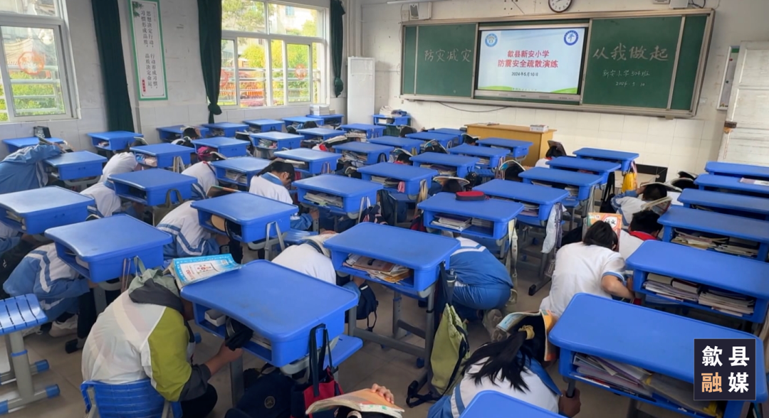 日前,歙县新安小学组织全校师生开展防震减灾演练。上午9时50分,随着应急口令的发布,演练活动正式开始,学生们迅速进入应急状态,双手抱头,将身体藏在桌子底下。各班负责教师迅速到达指定岗位,引导学生沿着指定疏散路线快速撤离。在老师的指引下,学生们弯腰、抱头,快步急行,迅速撤离至安全地区。