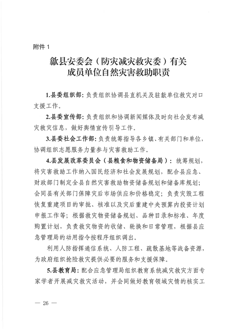 【自然灾害类预案】歙县自然灾害救助应急预案(2025年版)