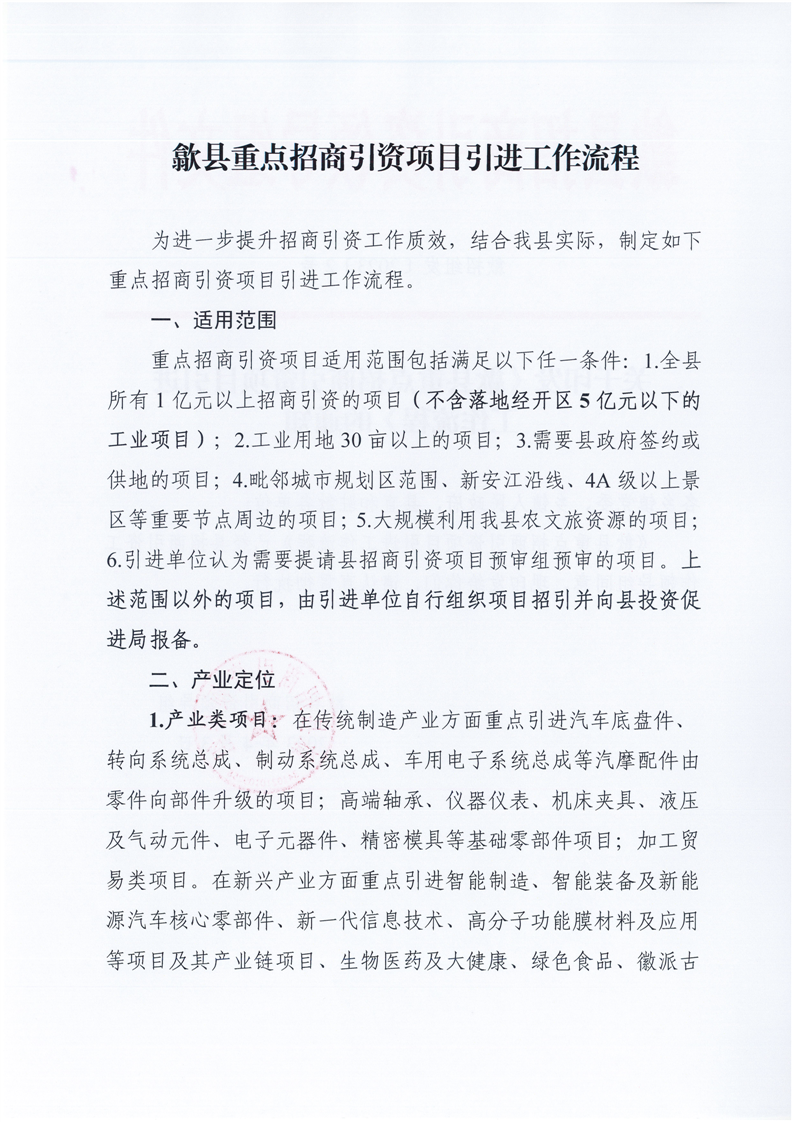 《歙县重点招商引资项目引进工作流程》