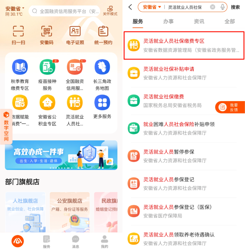 如果在离职后没有找到新的工作,那么可以选择灵活就业职工社保。现在通过“皖事通”APP可以线上办理参保,具体操作一起来看→