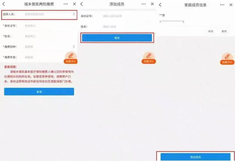 2.进入“城乡居民两险缴费”服务页面后,选择参保人员,如无往年的历史记录,可自行添加参保人信息。(添加参保人信息前需确认是否已完成城乡居民参保登记)