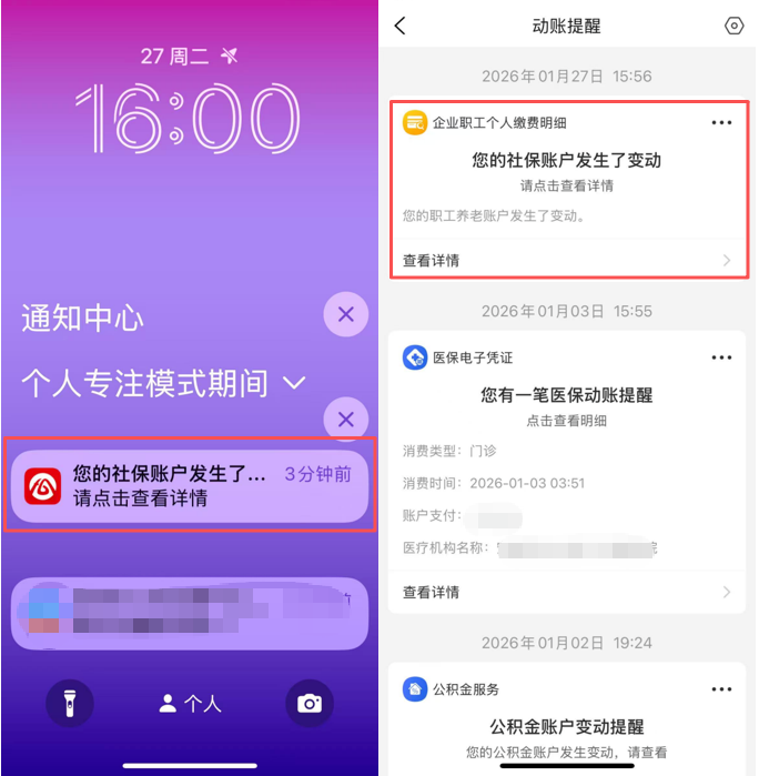 第一时间就知道社保账户有变动
