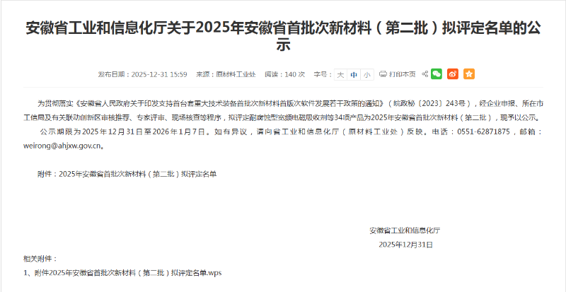 喜报!正杰科技产品入选2025年安徽省首批次新材料(第二批)拟评定公示名单