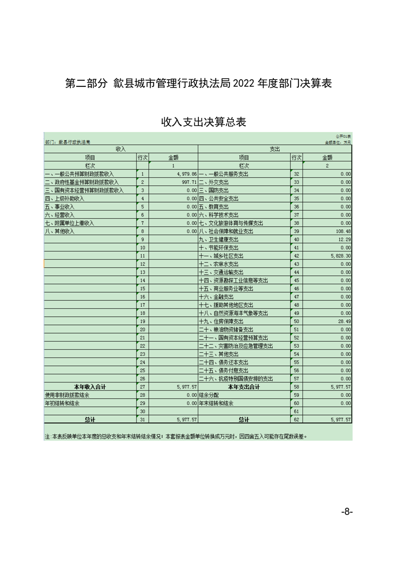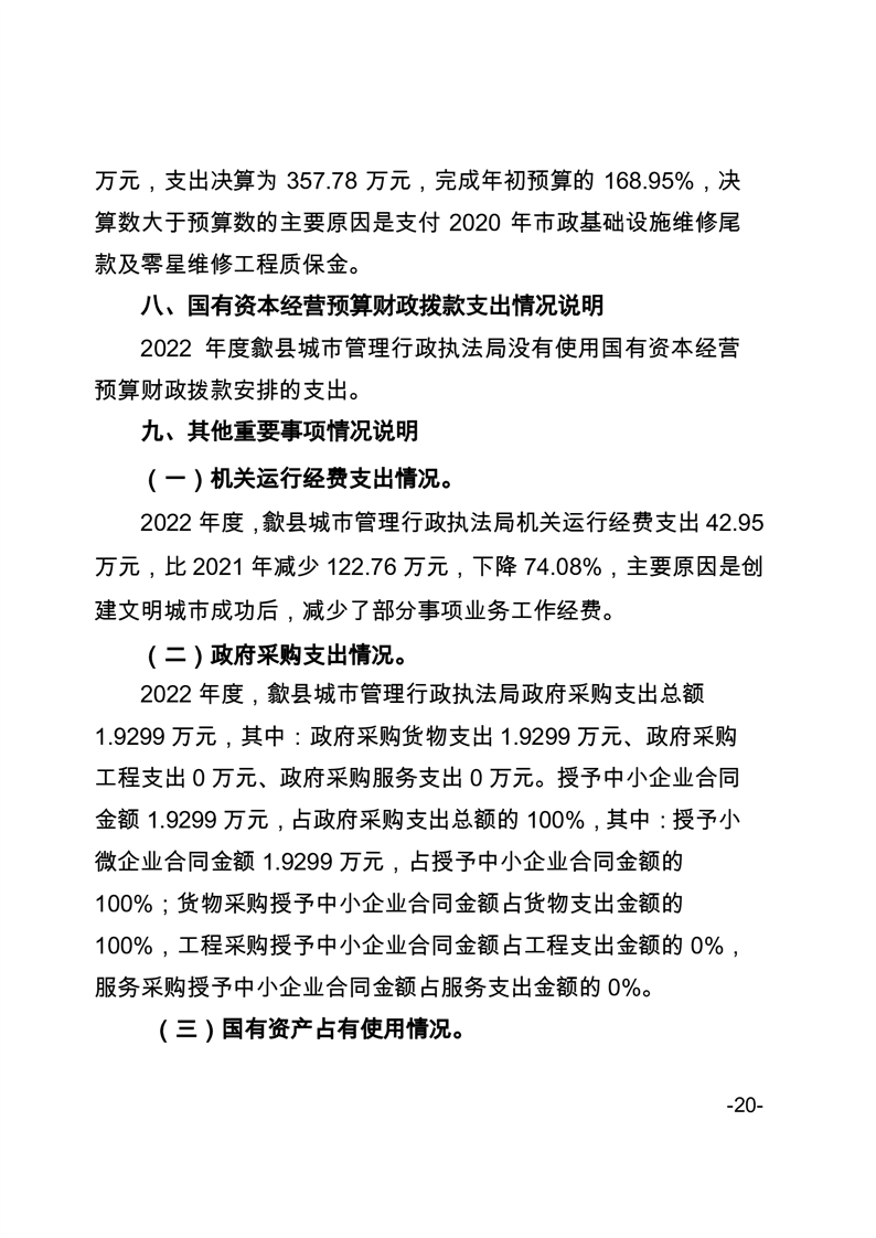 歙县城管执法局2022年度部门决算公开 |