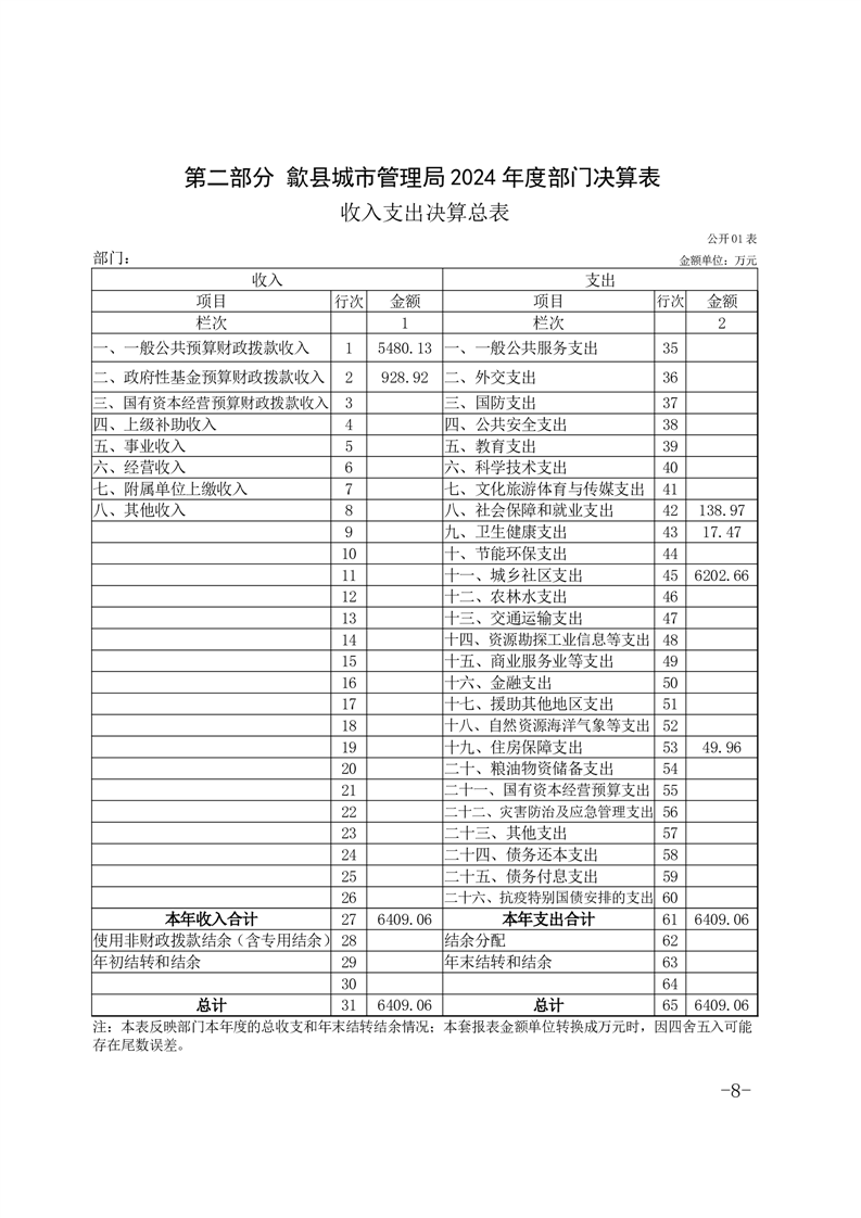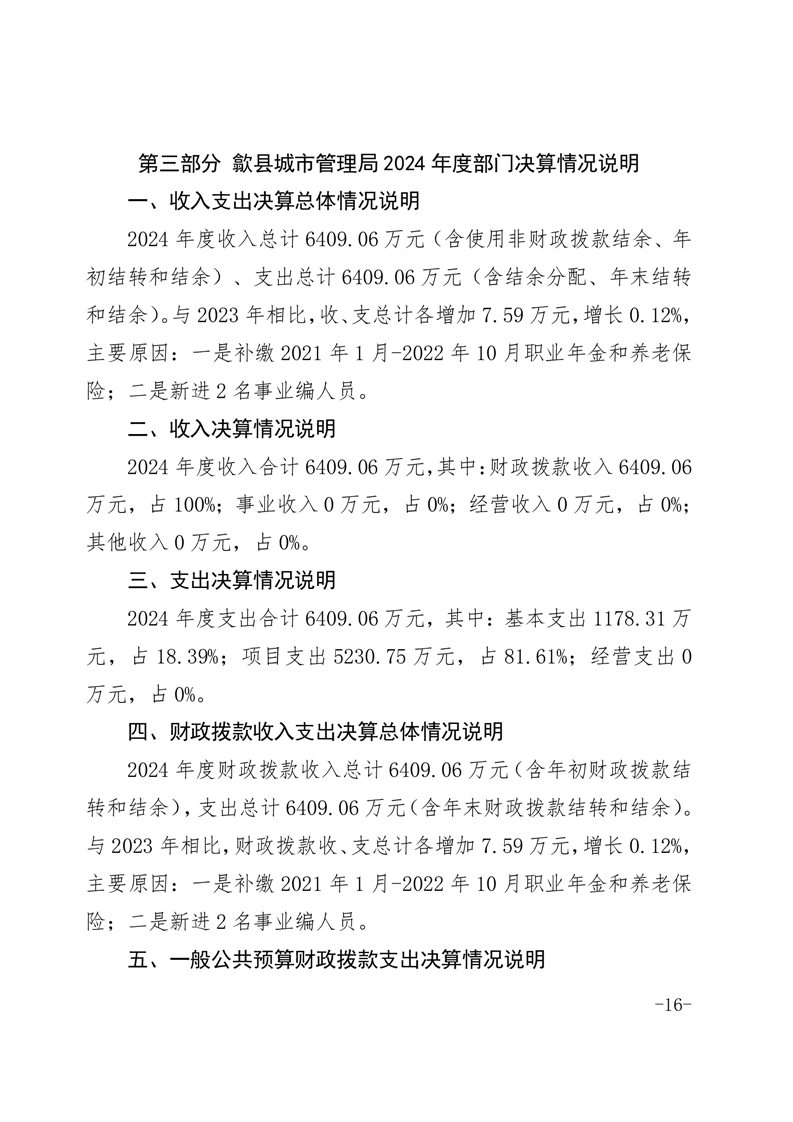 歙县城市管理局2024年度部门决算公开 |