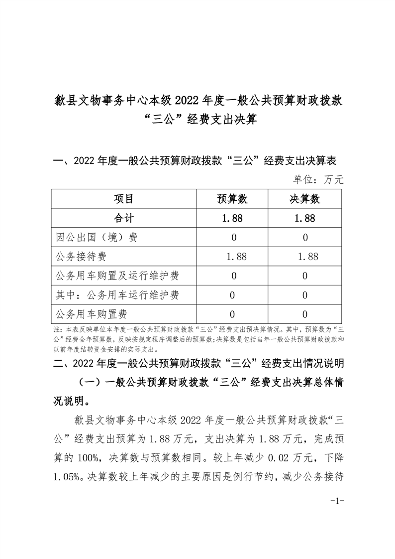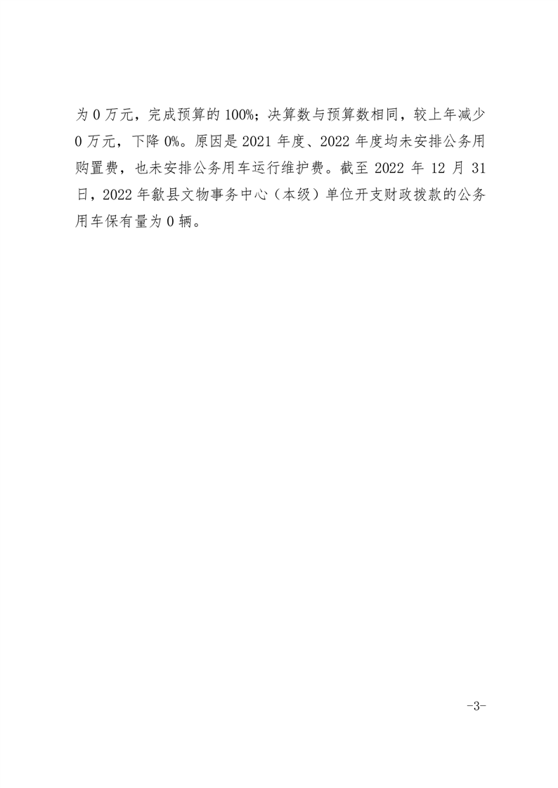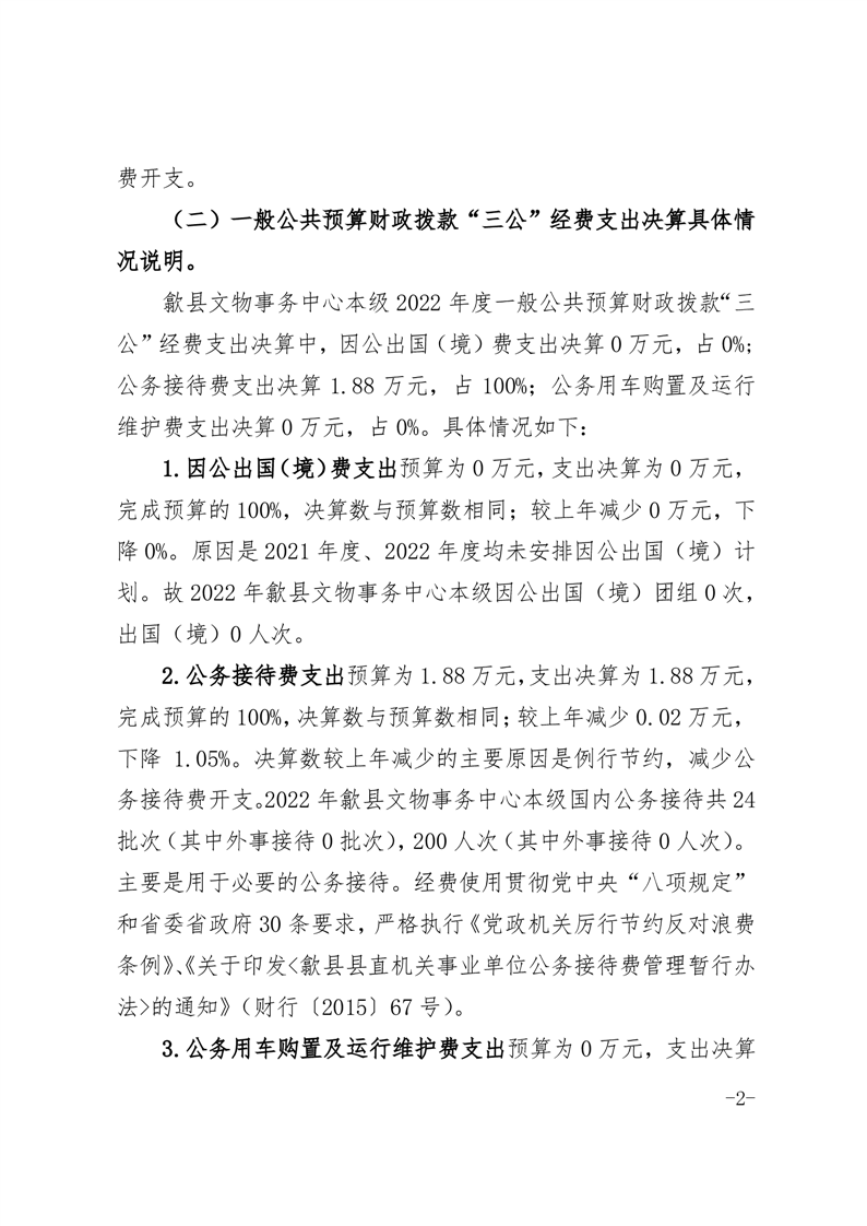 歙县文物事务中心本级2022年一般公共预算“三公”经费决算