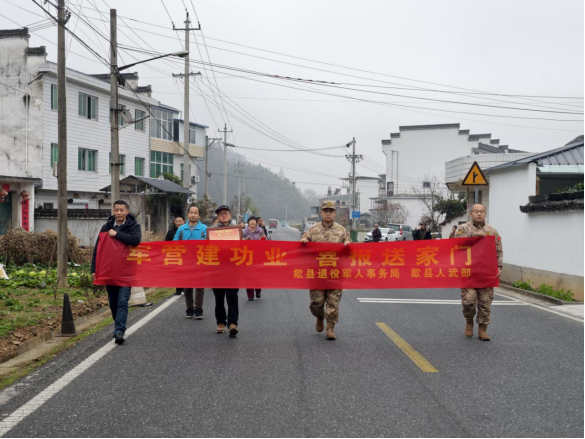 春意正浓,喜气盈村。2月10日上午,由歙县人武部、歙县退役军人事务局及北岸镇联合组成送喜报队伍,赴歙县北岸镇七贤村,为在部队荣立三等功的现役军人吴文韶家庭举行隆重而简朴的喜报送达仪式。