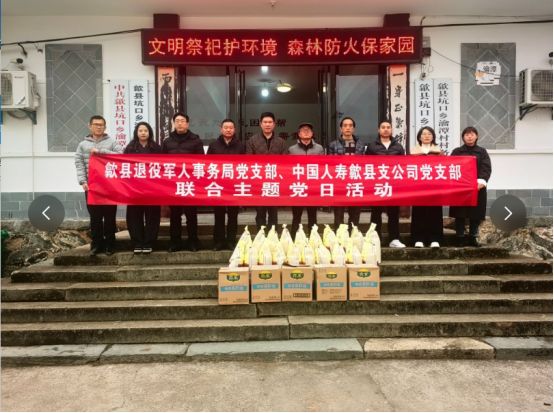 在2026年春节即将来临之际,为让困难群体深切感受到党和政府的关怀与社会各界的温暖,2月5日,歙县退役军人事务局党支部携手中国人寿歙县支公司党支部前往坑口乡瀹潭村,联合开展节前走访慰问主题党日活动。