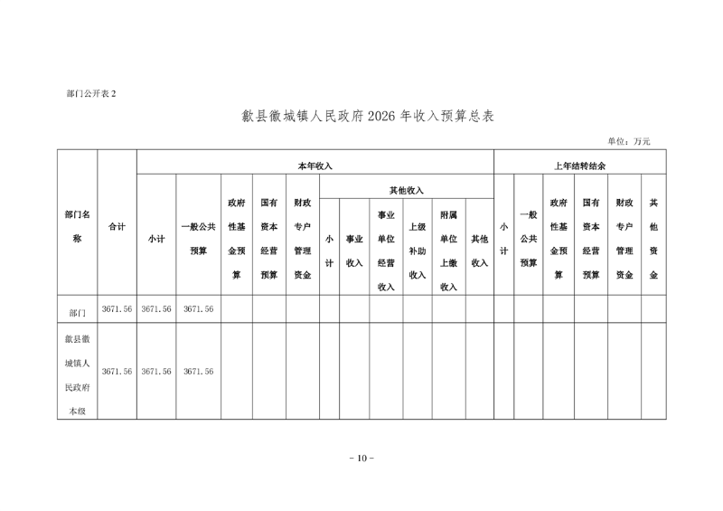 歙县徽城镇人民政府2026年部门预算
