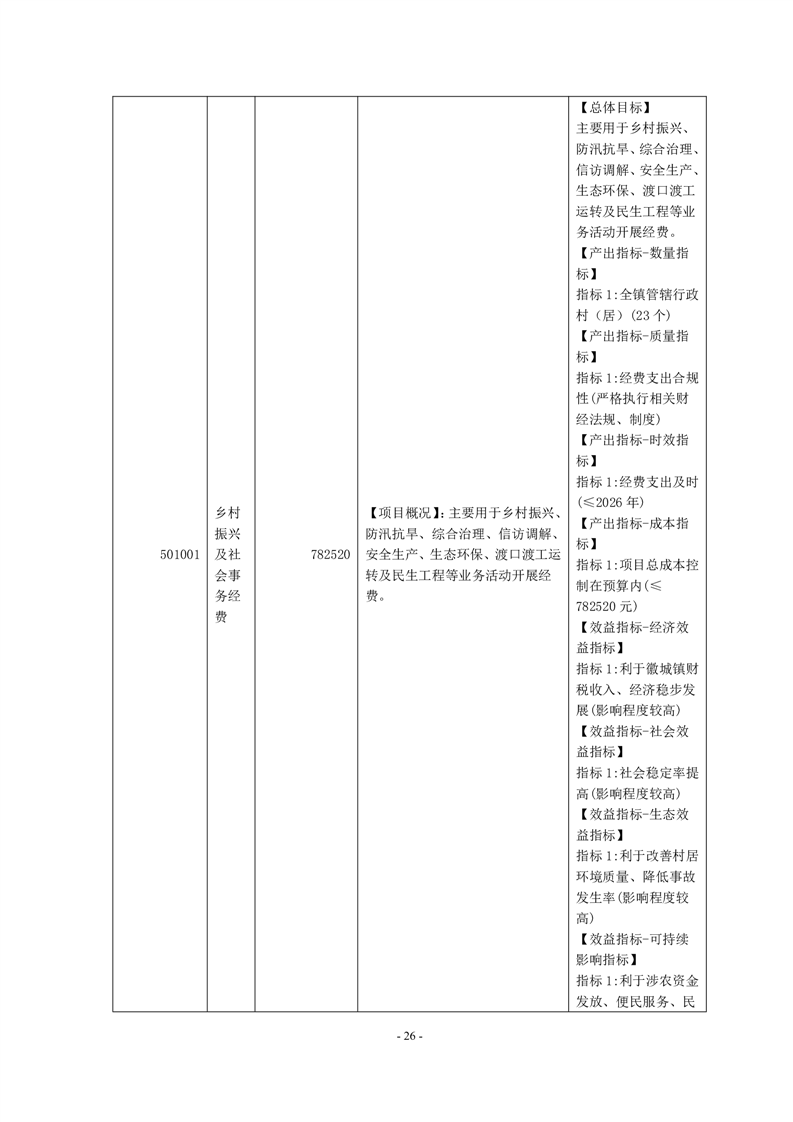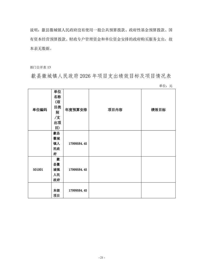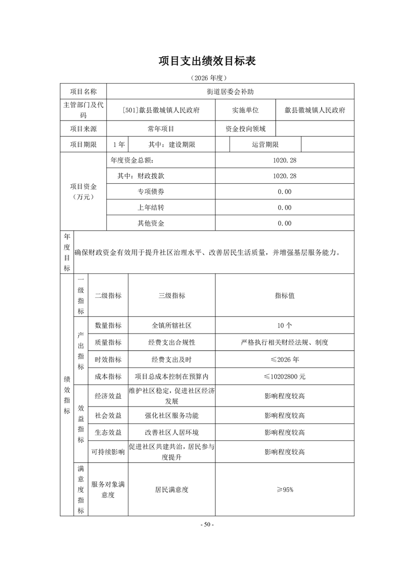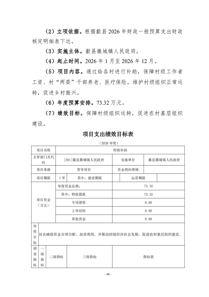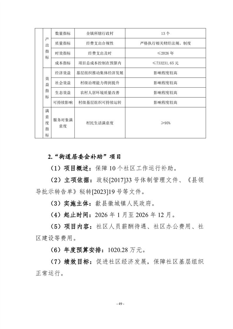 附件:歙县徽城镇人民政府2026年度项目支出绩效目标.zip