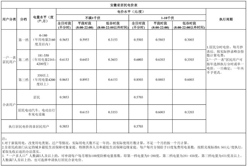 峰段、谷段时间段划分及具体电价可通过“网上国网”查询,当前安徽省峰谷电划分见下图。