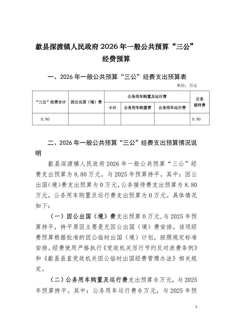 歙县深渡镇人民政府2026年一般公共预算“三公”经费预算.pdf