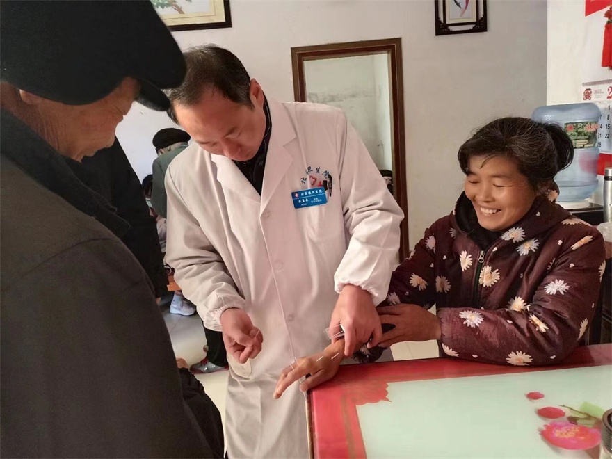 肩扛医疗器械,手提宣传手册,巡诊小分队走村入户,为村民提供量血压、测血糖、针灸理疗、心理健康咨询等服务,耐心询问村民身体状况,赠送健康手册,普及健康知识,现场答疑解惑,并针对不同类型的亚健康人群,提出不同的治疗方案,告知村民要加强自我保健,适当运动、合理膳食,保持乐观心态。