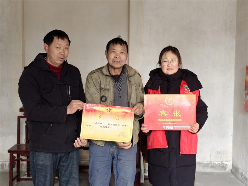 冬日漫漫,情意融融。1月22日上午,歙县北岸镇与大阜村退役军人服务站工作人员共同来到大阜村现役军人潘佳栋家中,送上其在部队荣获2025年度“四有”优秀士兵的喜报。