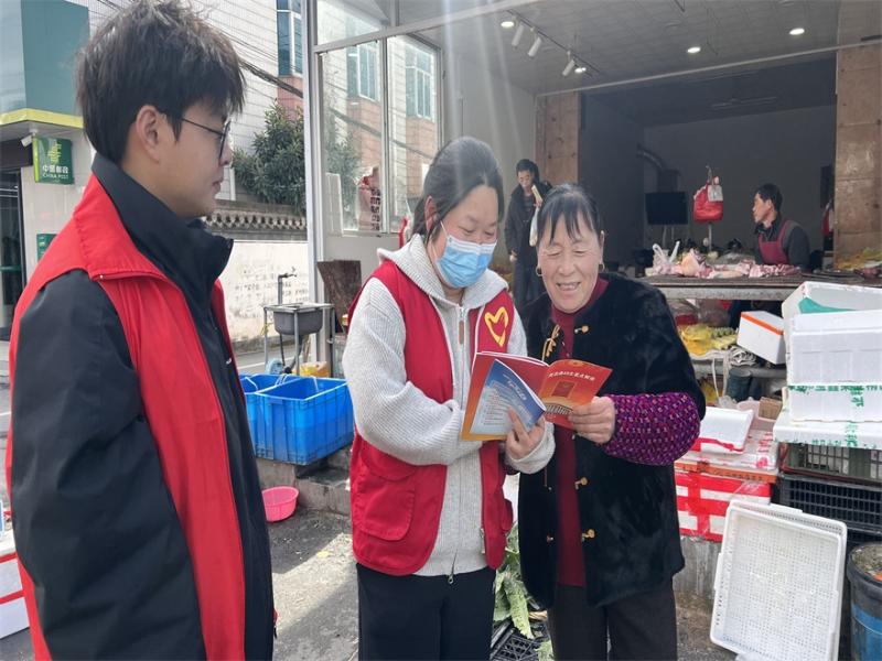 集市普法接地气,法律知识入人心。在热闹的农贸市场,志愿者们身穿醒目的红马甲,穿梭在熙熙攘攘的人群中。他们手持精心准备的宣传资料涵盖民法典、反诈防骗、婚姻家庭、邻里纠纷、老年人权益保护、未成年人保护等与群众生产生活密切相关的法律知识,内容通俗易懂、实用性强,既贴合新春期间的社会生活特点,也精准对接群众的法治需求。