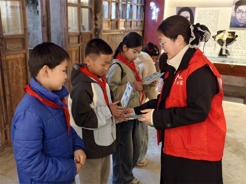传承精神,深度融合红色教育与“护苗”行动。祭扫活动结束后,一场聚焦青少年健康成长的“扫黄打非”微课堂在纪念馆学习厅内开讲。现场工作人员向每位少先队员发放了图文并茂的“扫黄打非”宣传折页,结合方璧烈士以文化唤醒民众、用笔墨传播真理的革命事迹,深入浅出地讲解了非法出版物的危害、网络不良信息的辨别方法以及如何自觉抵制文化垃圾。
