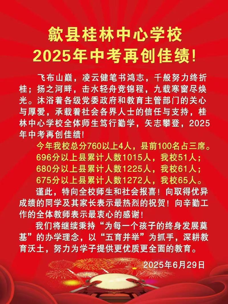 【工作成效】歙县桂林中心学校中考喜报
