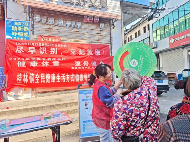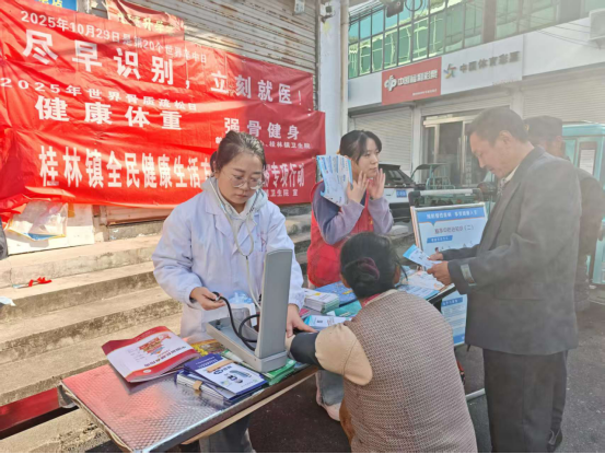 10月29日,恰逢重阳佳节与第20个世界卒中日,桂林镇卫生院联合县疾控中心在镇街道开展主题宣传服务活动,将敬老关爱与健康科普深度融合,为辖区村民送上节日健康厚礼。