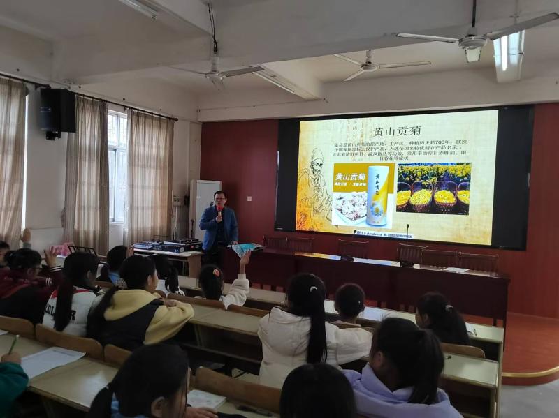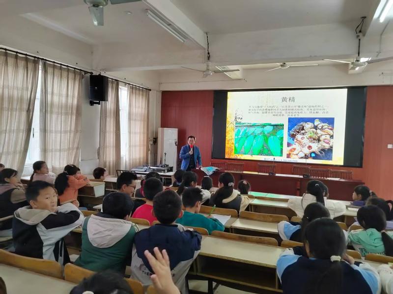 讲座上,卫生院的主治中医师洪宏忠将焦点对准了歙县本土的道地药材。歙县作为中医药文化底蕴深厚之地,拥有贡菊、三潭枇杷叶、山茱萸等多种知名道地药材。讲师通过生动的图片、详实的案例,深入剖析了这些药材的独特生长习性、采摘技巧、药用功效以及在传统中医方剂中的应用,让孩子们深刻领略到家乡道地药材的魅力与价值。