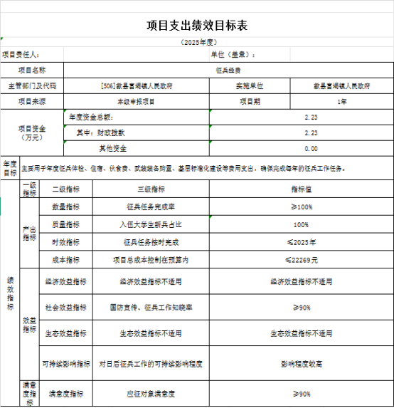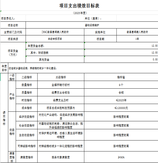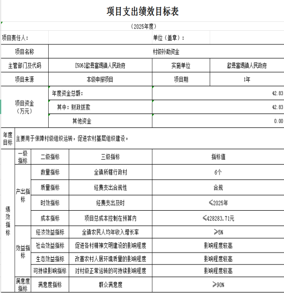 歙县富堨镇人民政府2025年度项目支出绩效目标