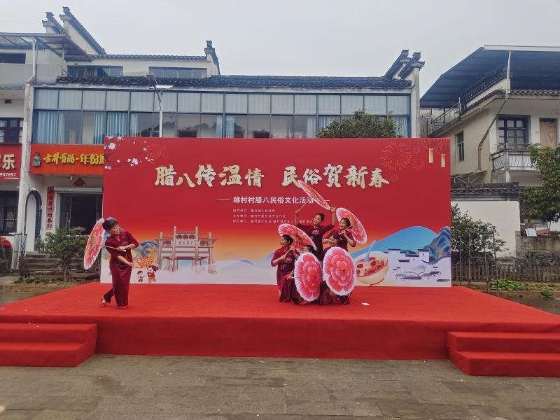 1月26日正值农历腊八节,歙县雄村镇在雄村村桃花坝成功举办“腊八传温情,民俗贺新春”腊八节民俗文化演出活动。此次活动将非遗展演、文艺汇演、表彰激励与惠民服务相结合,为群众带来一场丰富多彩的文化盛宴,营造出喜庆祥和、温馨团圆的节日氛围。