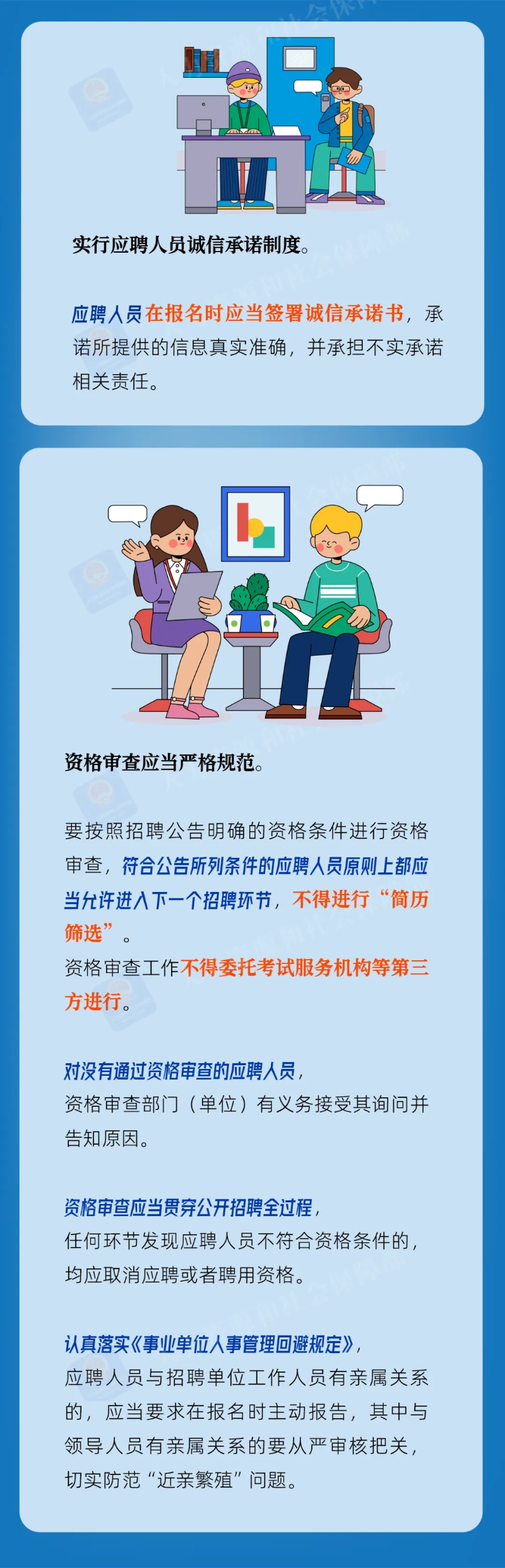 为提高事业单位选人用人工作质量和水平,建设高素质专业化的事业单位工作人员队伍,中央组织部、人力资源社会保障部近日印发《关于进一步做好事业单位公开招聘工作的通知》。带你一图看懂——