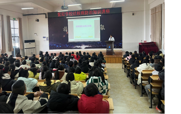 3月19日下午,卫生院组织人员到紫阳学校开展送宣传进校园活动,举办结核病防治知识讲座,为同学们讲解了什么是结核病,结核病的传播途径,易感人群,以及预防和治疗方法,让同学们养成勤通风、不随地吐痰等良好的生活习惯,也希望能通过 “小手牵大手”进行结核防治知识的接力传达。