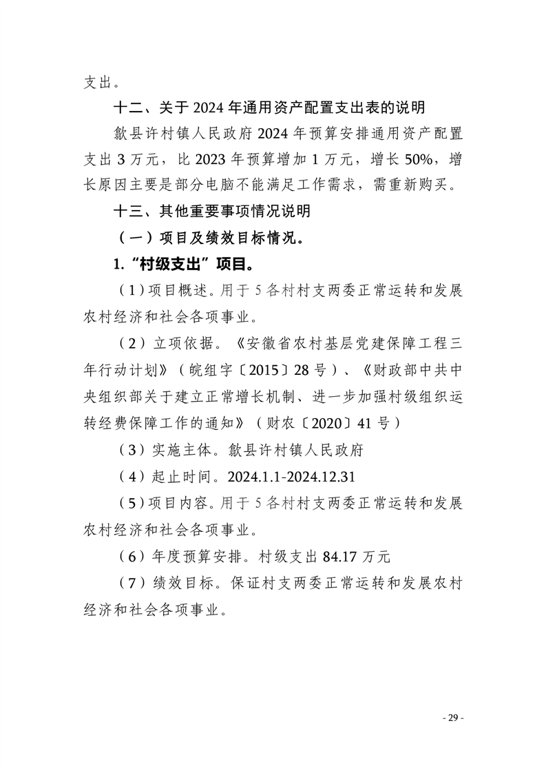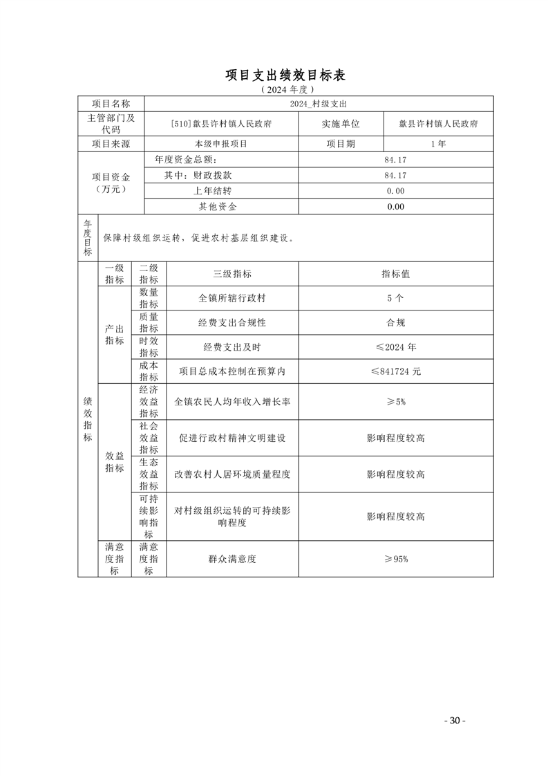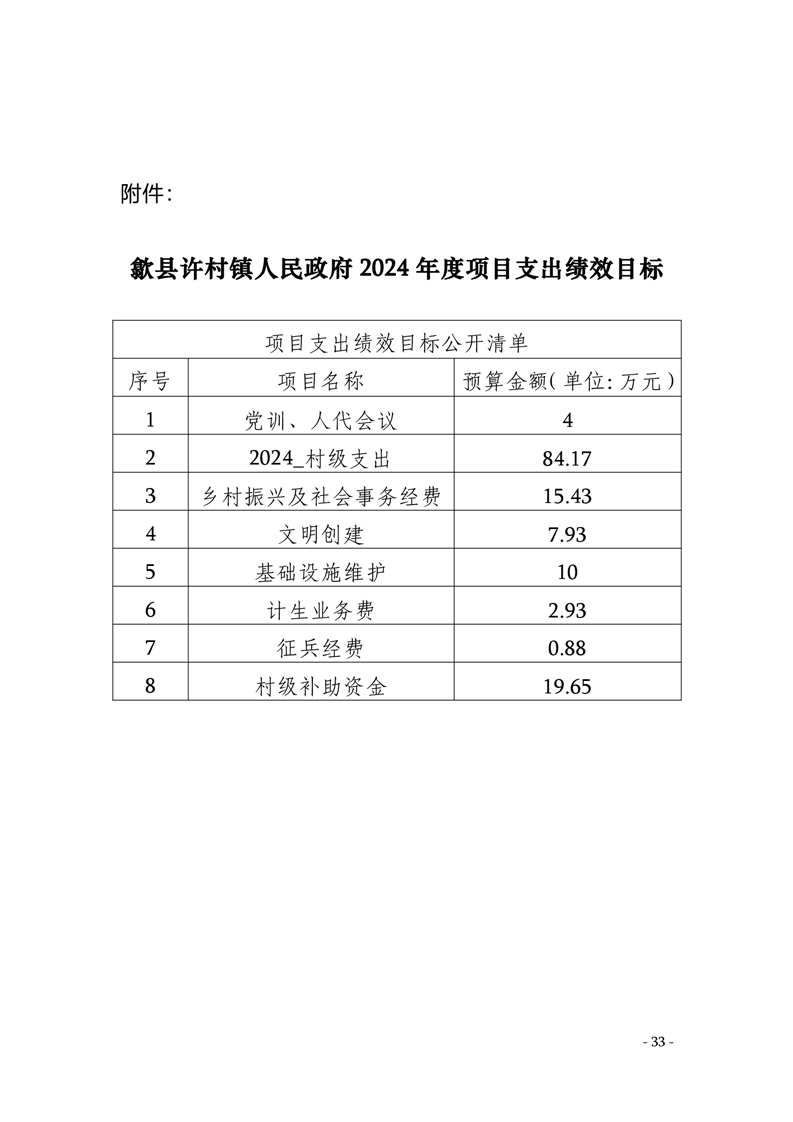 附件:歙县许村镇人民政府2024年项目支出绩效目标.pdf