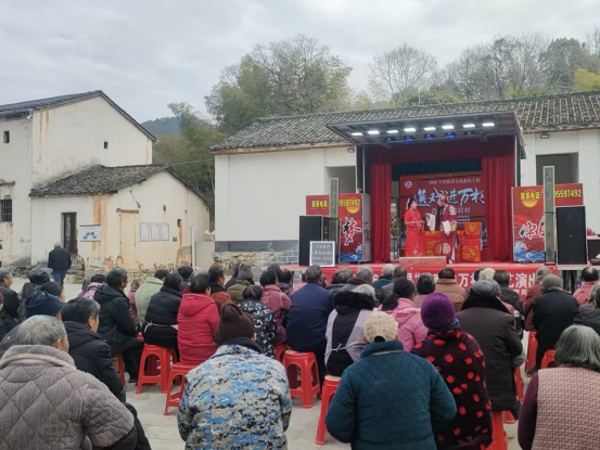 锣鼓喧天聚乡邻,戏韵悠长润民心。为弘扬中华优秀传统戏曲文化,丰富广大群众精神文化生活,连日来,许村镇“送戏进万村”活动在各村陆续拉开帷幕。专业剧团携《三女拜寿》《状元拜母》《梁赵姻缘》等经典黄梅戏剧目,将一场场高品质的文化盛宴送到群众“家门口”。