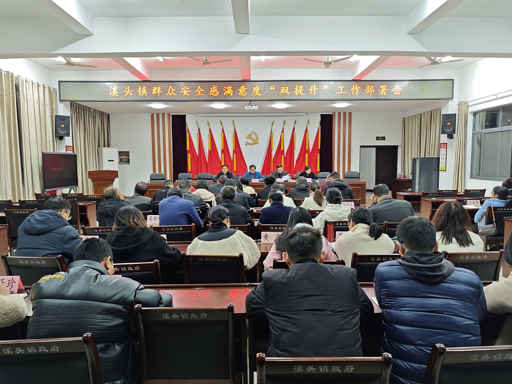 安排部署,提升思想认识。溪头镇组织召开了全体镇干会议,对群众安全感满意度“双提升”工作进行安排部署,会议要求全镇上下要高度重视群众安全感满意度“双提升”工作,就加强矛盾纠纷排查化解、开展治安巡防、责任包保、氛围营造等方面做了强调和部署。