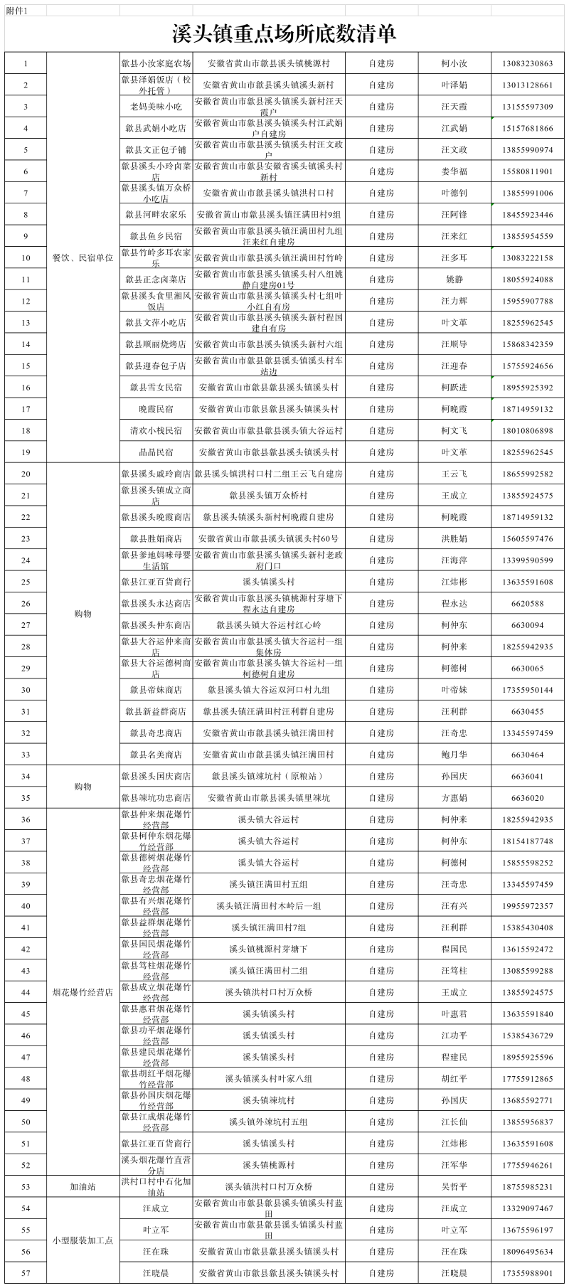 附件1:溪头镇餐饮、民宿、商店、加油站等重点场所底数清单