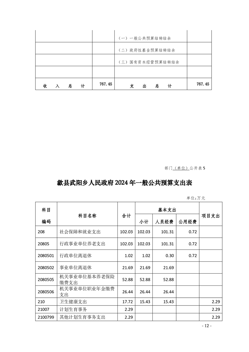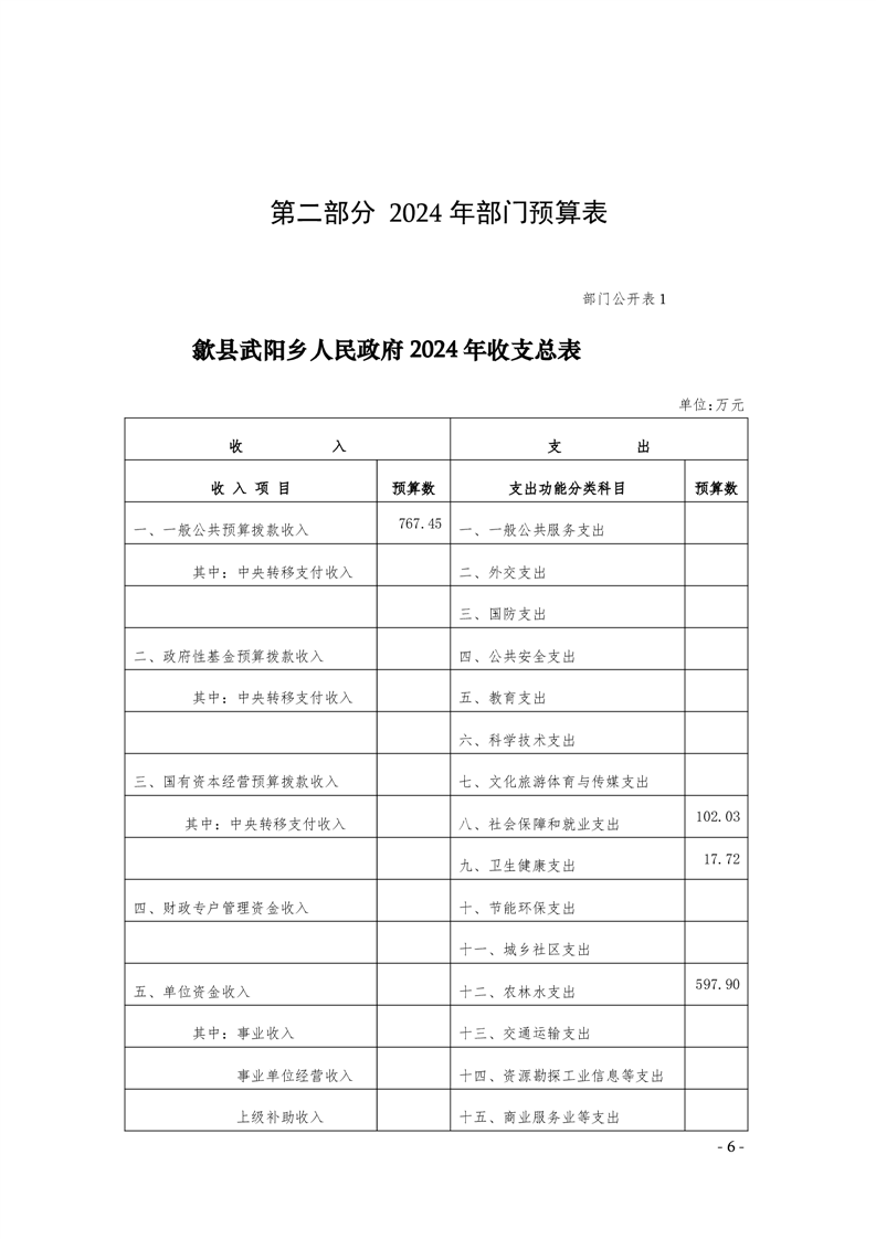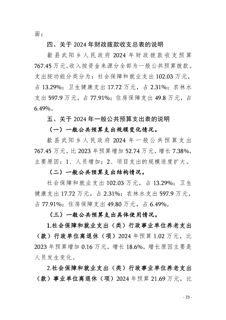 歙县武阳乡人民政府2024年部门预算