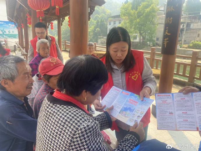 5月10日,安徽歙县武阳乡结合民生工程活动,开展反邪防电诈宣传。平安志愿者在武阳村文化长廊设立咨询台,向过往群众发放宣传手册,面对面向群众讲解邪教组织的特征和危害,对老年群众重点讲解冒用基督教蛊惑渗透的几种邪教活动特点,努力营造人人知邪教、人人防邪教、人人反邪教的浓厚社会氛围。