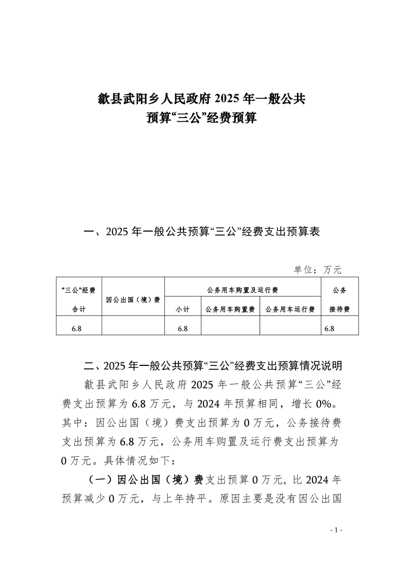 2025年歙县武阳乡人民政府“三公经费”预算公开.doc