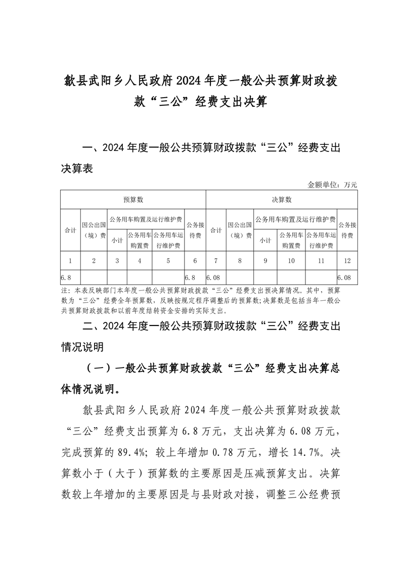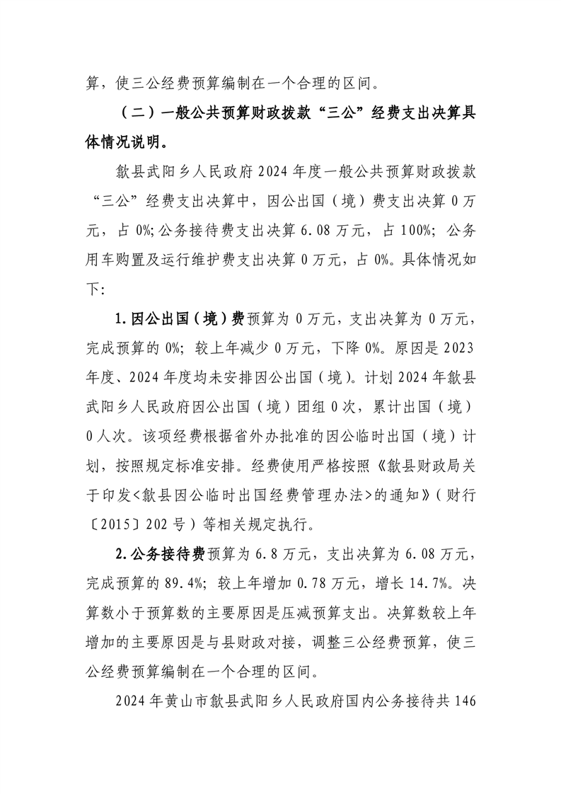 歙县武阳乡人民政府2024年度一般公共预算财政拨款“三公”经费支出决算