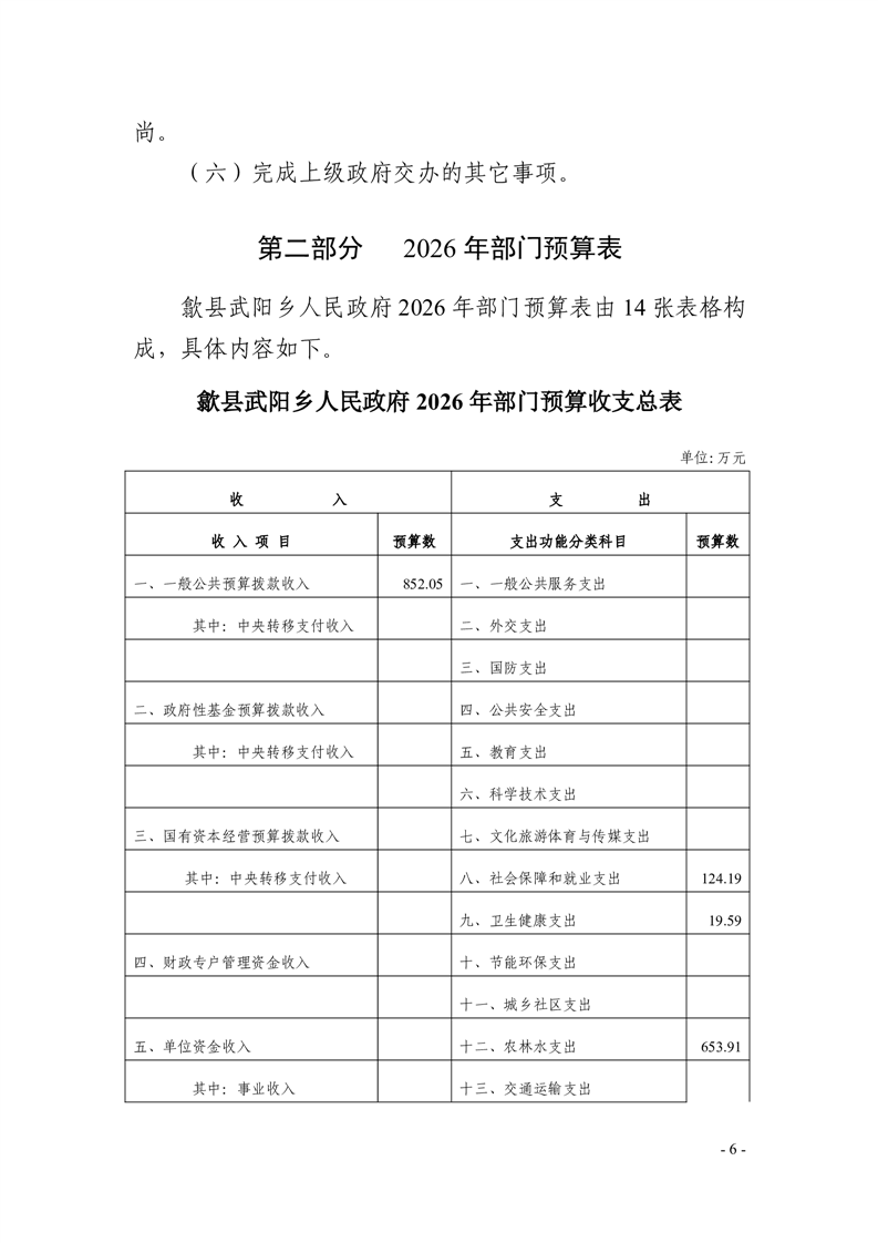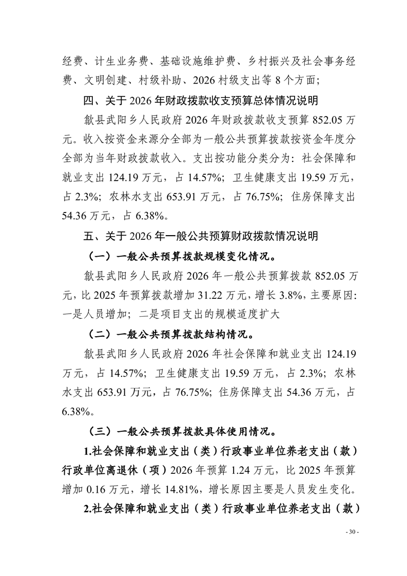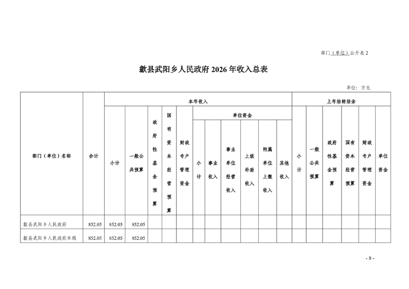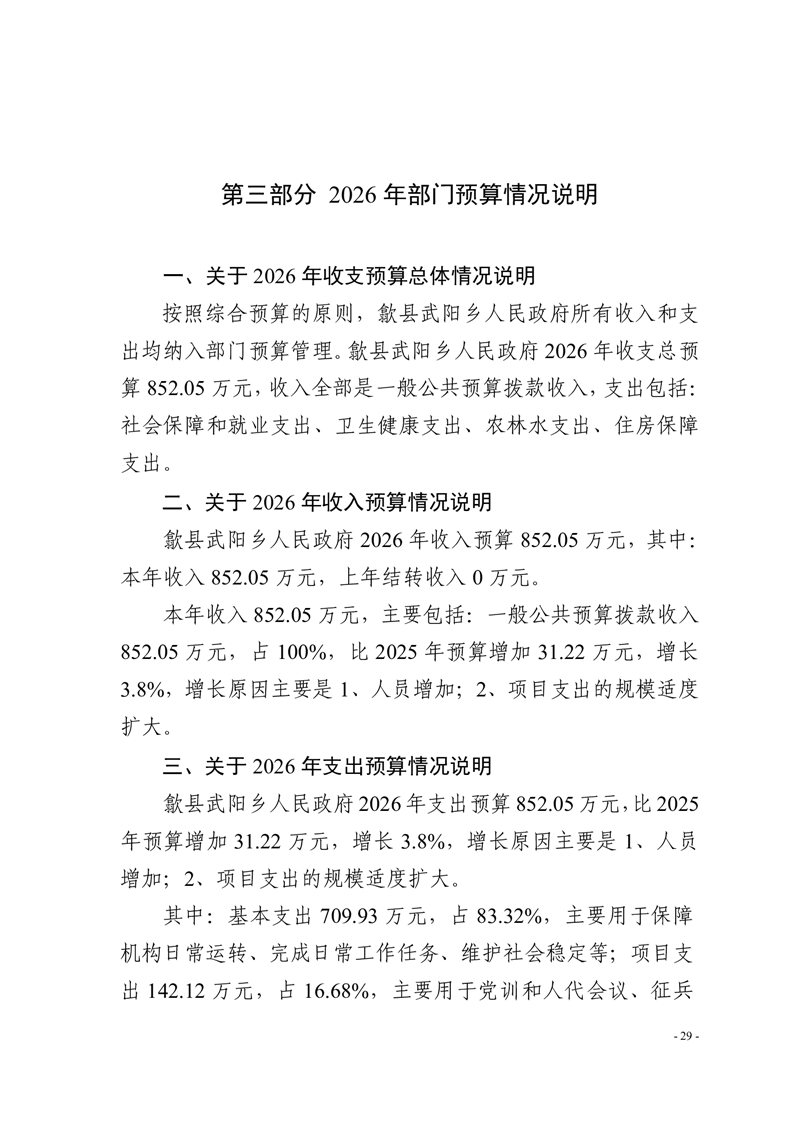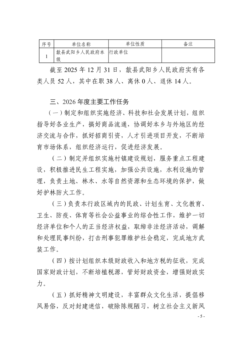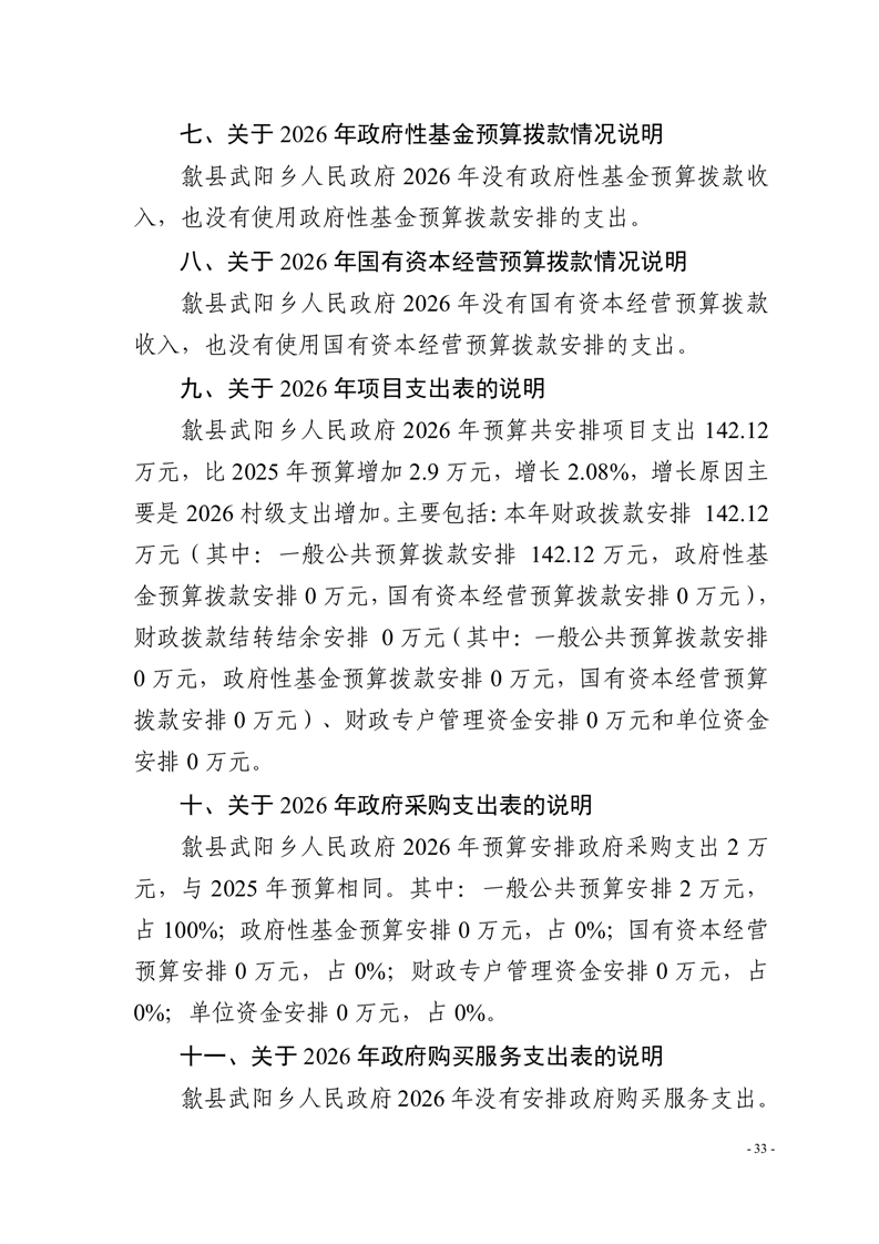 歙县武阳乡人民政府2026年部门预算