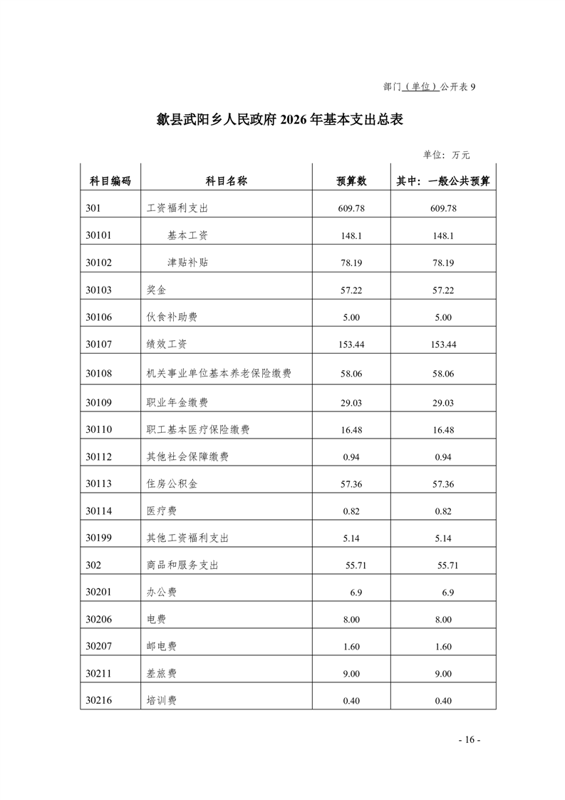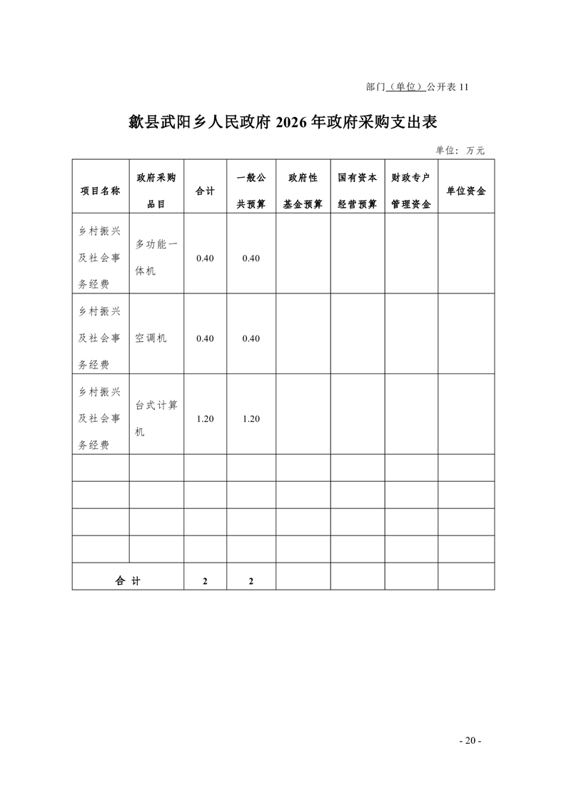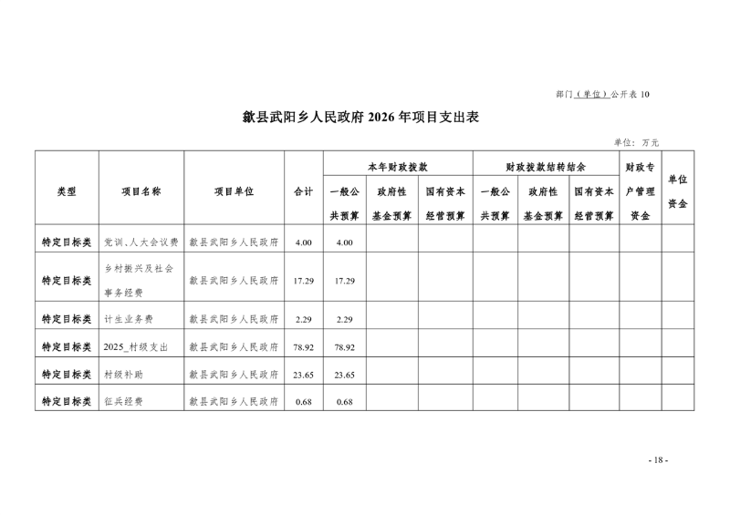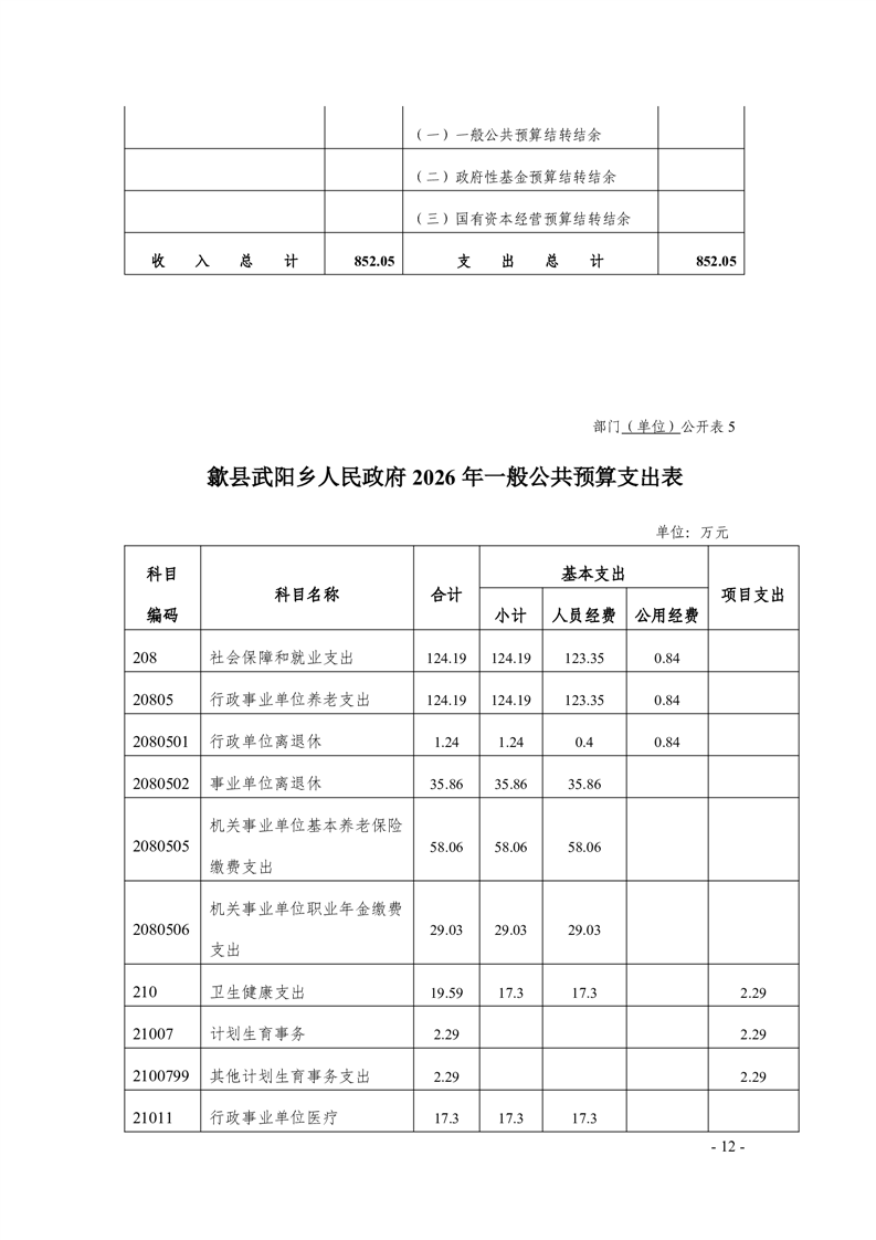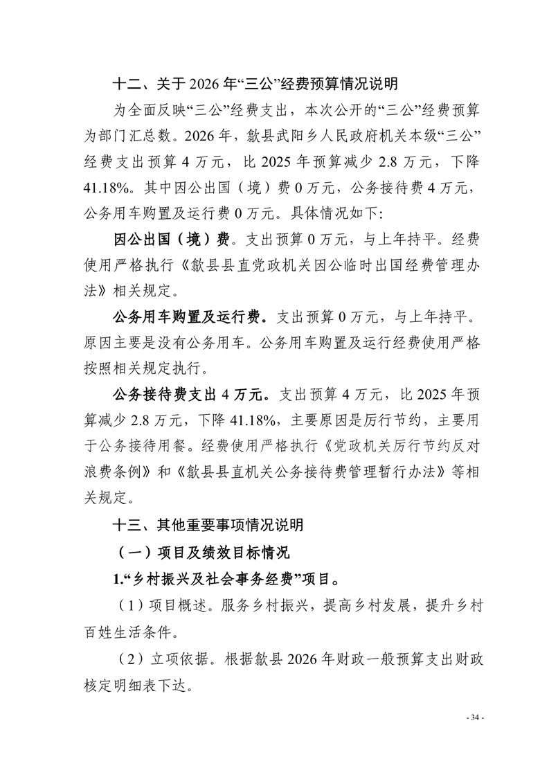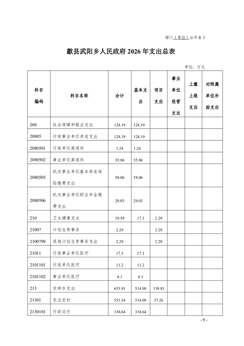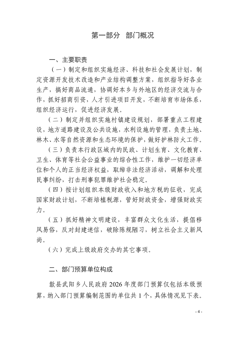 歙县武阳乡人民政府2026年部门预算